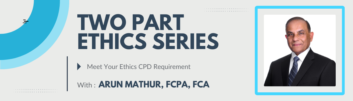 Arun Mathur, FCPA, FCA, is the owner and lead instructor at UltimQuest Knowledge. He has over 40 years experience as a professional accountant, trainer, board member and community leader. He has presented to thousands of accounting and business professionals around the world on business ethics, improving governance, ESG and related topics. He explains how operating ethically results in a return on investment to individuals and to businesses. In 2018, he was awarded the FCPA designation from CPA Ontario. This fellowship is a recognition as a leader in the profession. He hopes to inspire the next generation of professional accountants to achieve fulfilling careers that create a positive impact in our society.